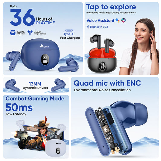 Aertek Airdopes 151 Earbuds Blue + 4-in-1, 65W Cable (Combo)